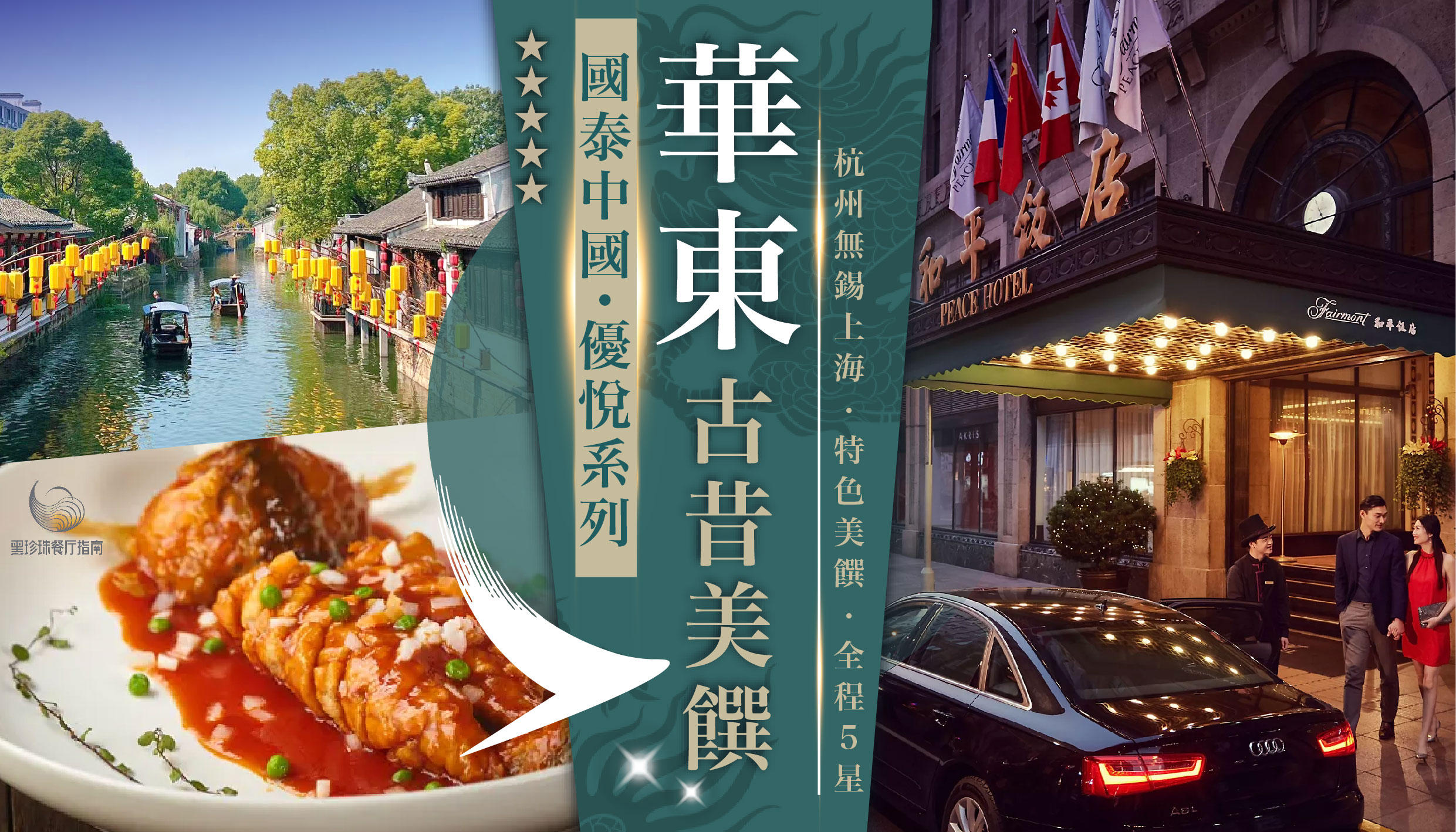 [5天] [華東優悅] 杭州無錫上海.2晚外灘和平飯店.杭州Conrad. 無錫盪口古鎮美憬閣.國泰航空.黑珍珠指南美饌 [蘇浙匯]. 乘船遊覽 [京杭古運河&西湖] .禪文化小鎮拈花灣. 唐伯虎點秋香華太師故里 [盪口古鎮].2+1座位旅遊車 [絕無自費加遊] [全包行程膳食]