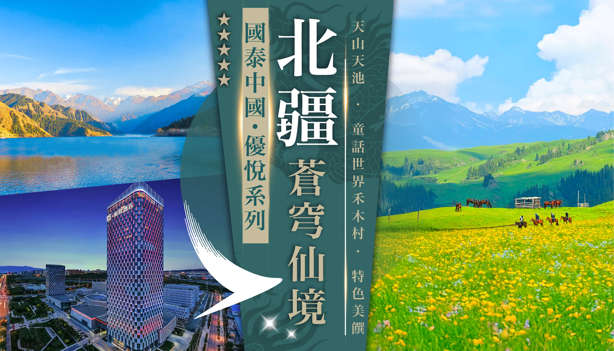 [10天] [北疆優悅] 國泰直航烏魯木齊.5大尊享安排.童話世界 [禾木村].天山天池.五彩灘.國家5A級 [喀納斯湖].喀拉峻草大草原.[烏爾禾] 魔鬼城.[伊寧] 賽里木湖.[吐魯番] 火焰山+坎兒井.黑珍珠指南美饌 [皇朝會].2晚5星酒店 [絕無自費加遊+購物站]