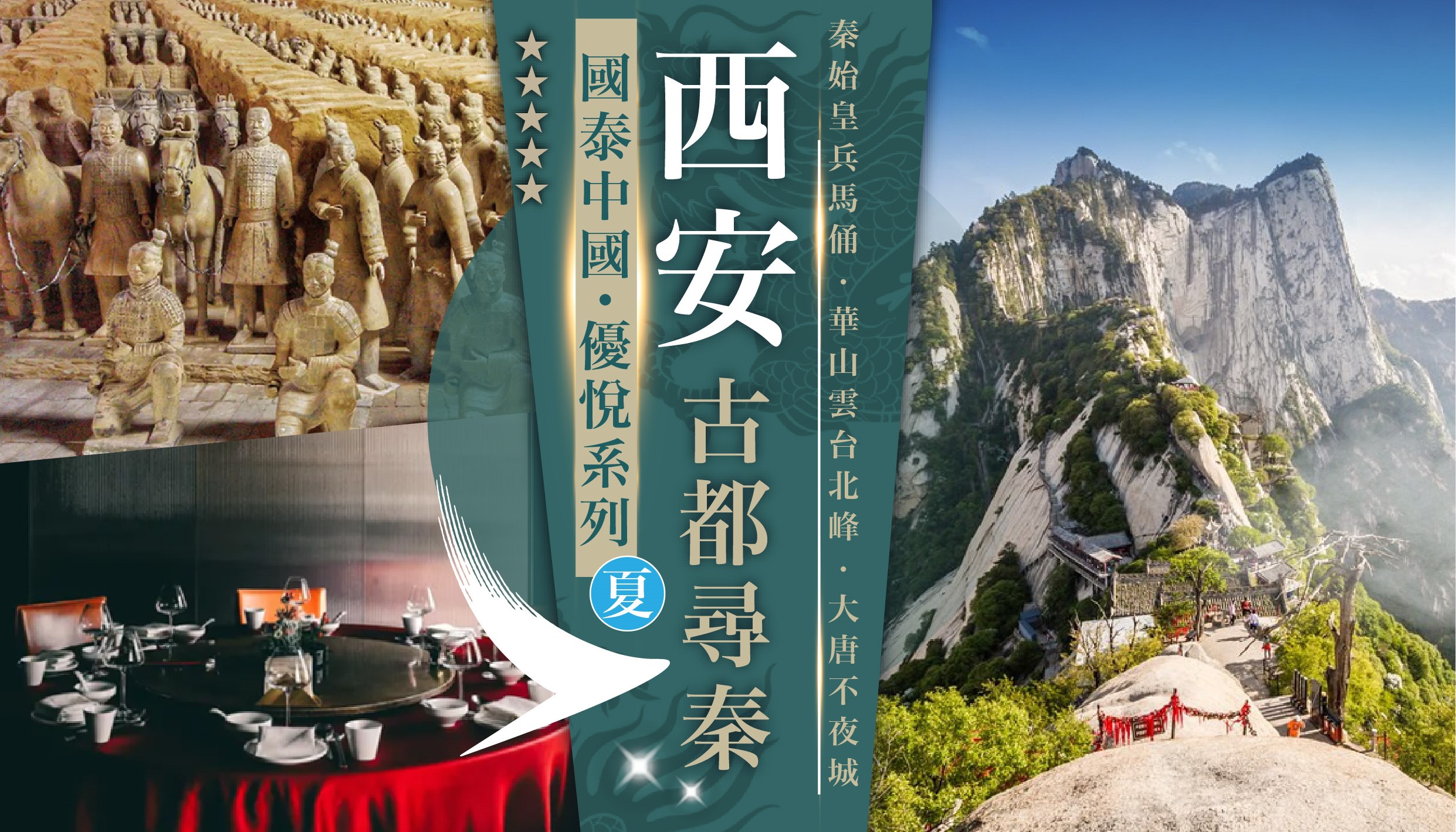 [6天] [尋秦優悅] 西安.國泰航空.【尋秦記】原型 [兵馬俑+銅車馬博物館]. 天下第一 [華山北峰] 纜車往返.國家5A級 [華清宮+長恨歌秀].漢服夜遊 [大唐不夜城].中國最完整 [西安古城牆].DIY工筆畫扇.黑珍珠美饌 [長安薈].德發長餃子宴.5晚不用搬.[全包行程膳食.純玩行程]