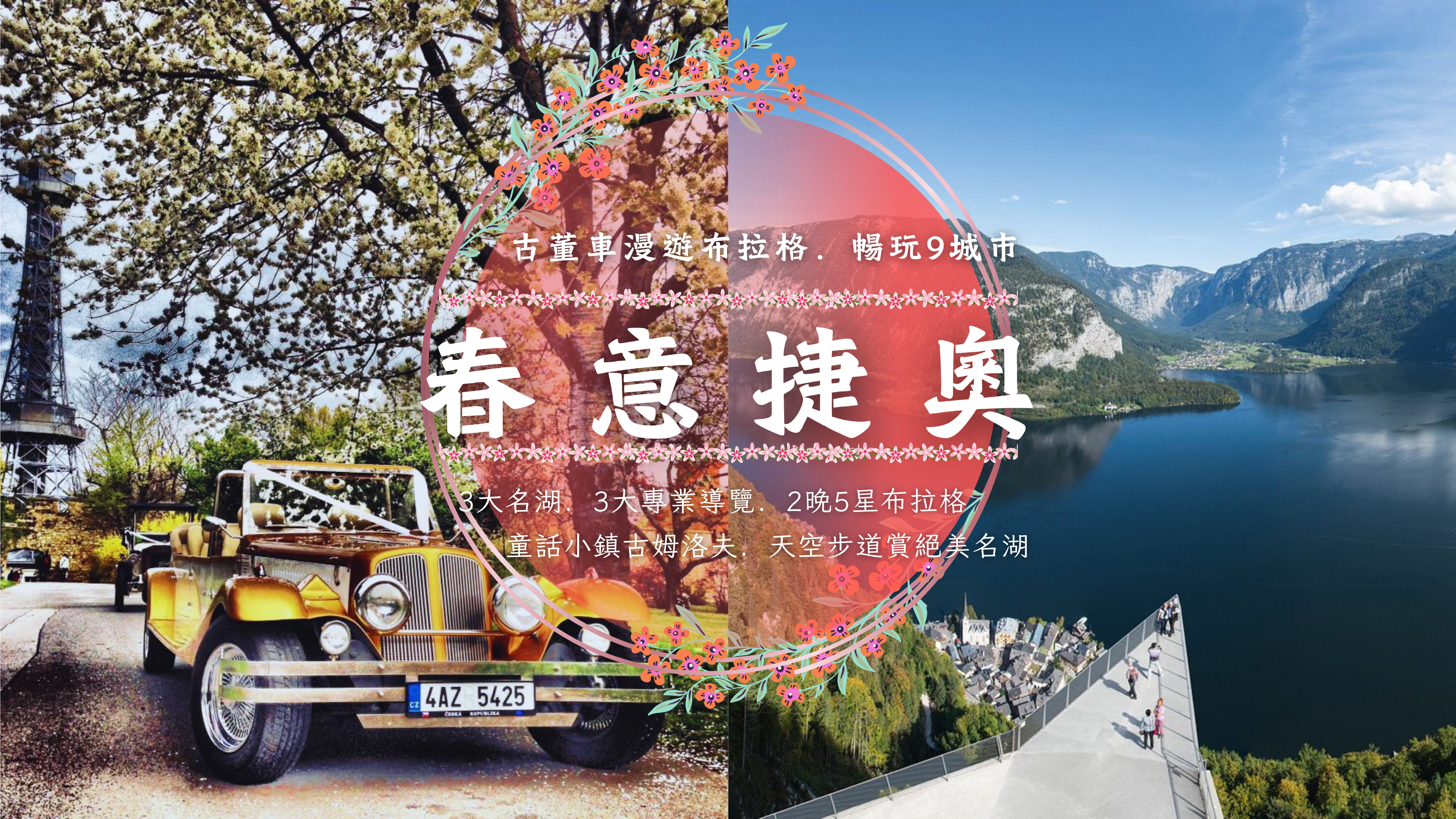 [10天] [春意湖景] 捷克+奧地利.3大湖區 [哈爾施塔特湖.月亮湖.沃爾夫岡湖].3大特色體驗 [古董車漫遊布拉格.HALLSTATT天空步道.波希米亞玻璃畫DIY].3大專業導覽 [美泉宮.皮爾森啤酒廠.薩爾斯堡古城].2晚布拉格 5*藝術酒店LE PALAIS ART [全包行程膳食]