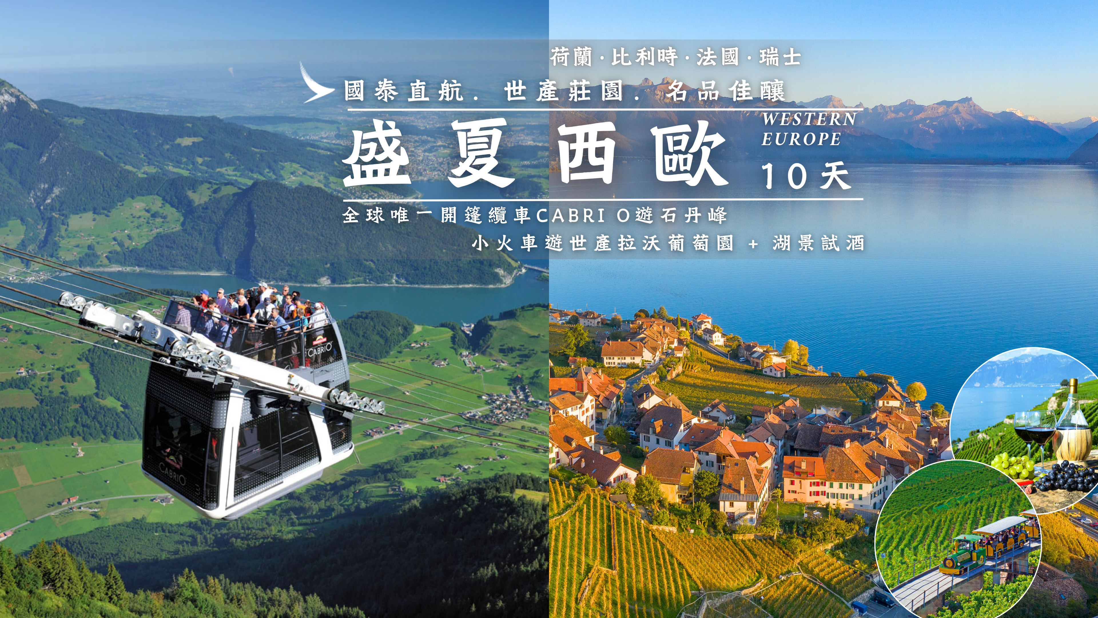 [10天] [盛夏西歐] 西歐4國「荷蘭.比利時.法國.瑞士」.國泰直航.小火車穿梭世產梯田葡萄園拉沃LAVAUX「賞湖景+嚐佳釀」.全球唯一雙層開篷纜車遊「石丹峰」.船遊美景琉森湖+荷蘭運河.全球最美「安特衛普火車站」.新士堅風車村「芝士+木屐工房」.連泊 2晚巴黎NOVOTEL[全包行程]