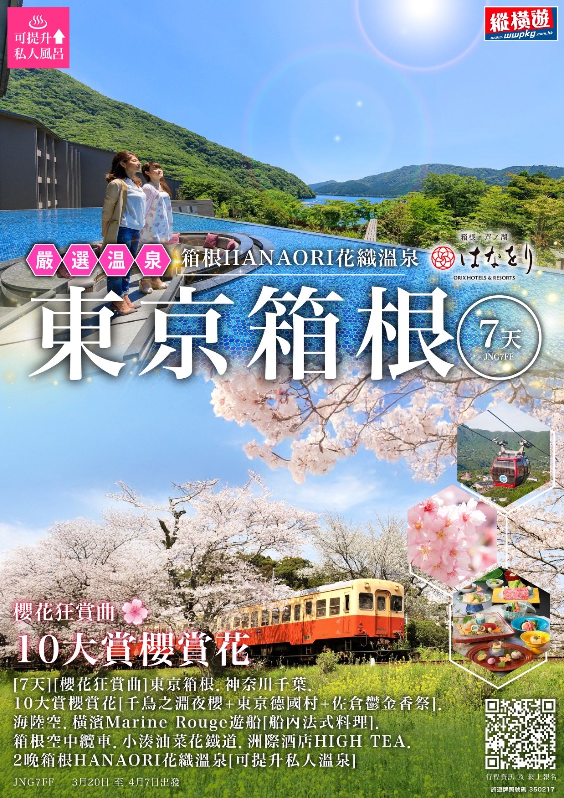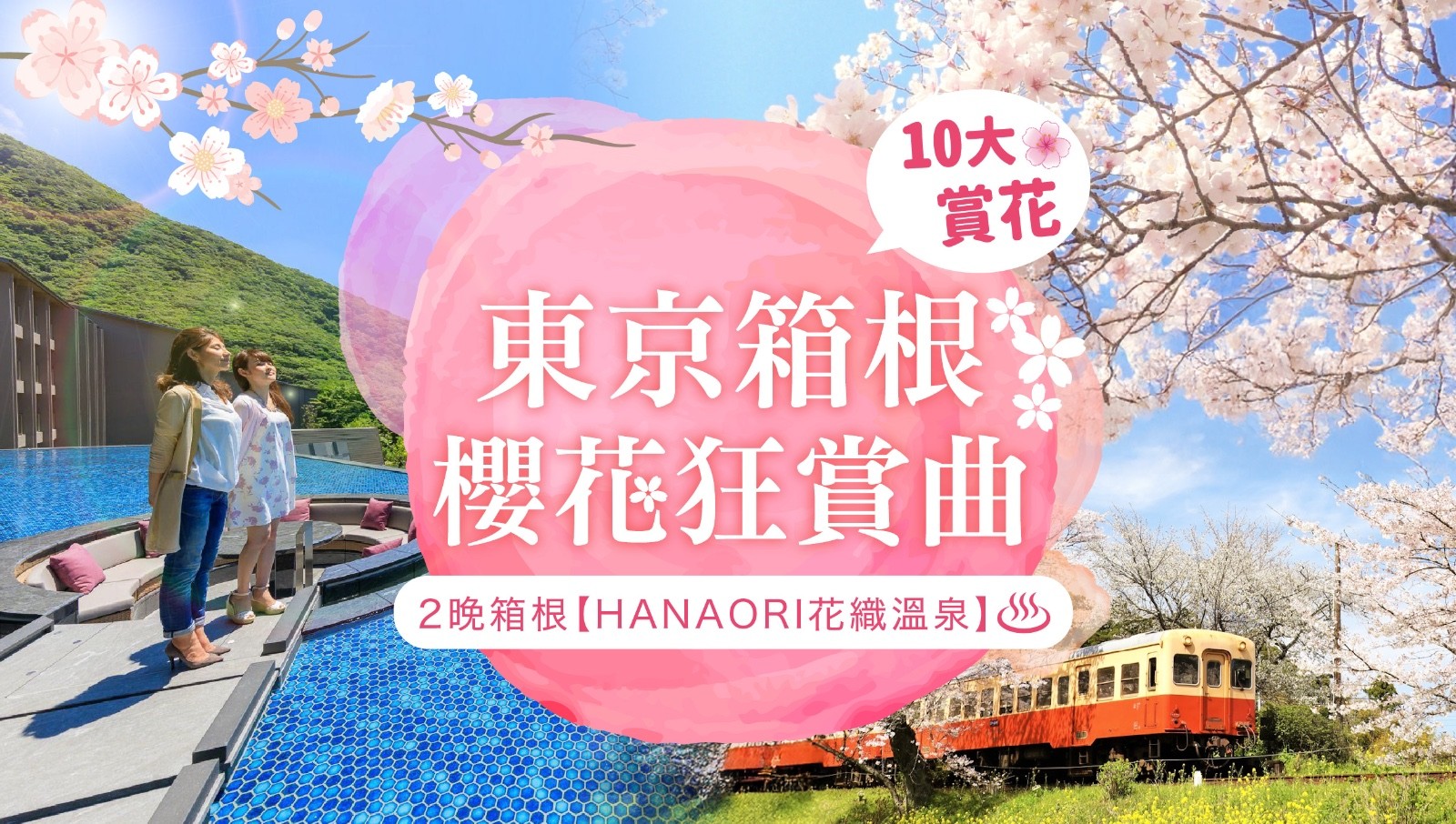 [7天] [櫻花狂賞曲] 東京箱根.神奈川千葉.10大賞櫻賞花 [千鳥之淵夜櫻 +東京德國村 + 佐倉鬱金香祭].海陸空.橫濱Marine Rouge遊船 [船內法式料理].箱根空中纜車.小湊油菜花鐵道.洲際酒店HIGH TEA.2晚箱根 HANAORI花織溫泉 [可提升私人溫泉]