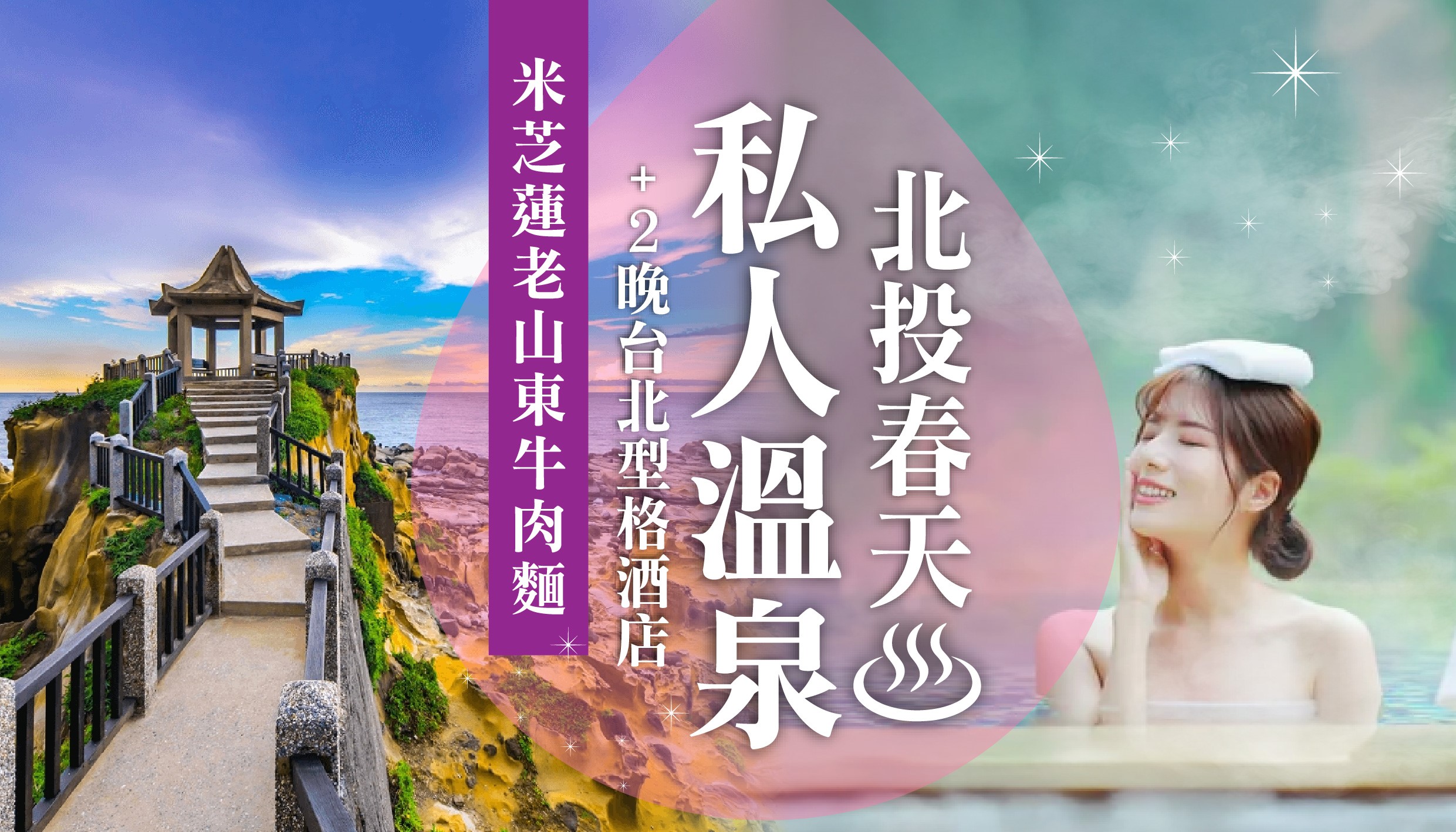 [4天] [溫泉美景] 台北.基隆.國泰航空.北投春天溫泉房內美人湯+酒店日式定食.象山自然步道.士林官邸賞花.米芝蓮老山東牛肉麵.夢幻蔚藍 [忘憂谷濱海].自然奇觀 [和平島地質公園].鳳梨酥DIY.2晚台北型格酒店 [1+2宿泊] 全程只搬1次 [絕無自費加遊]