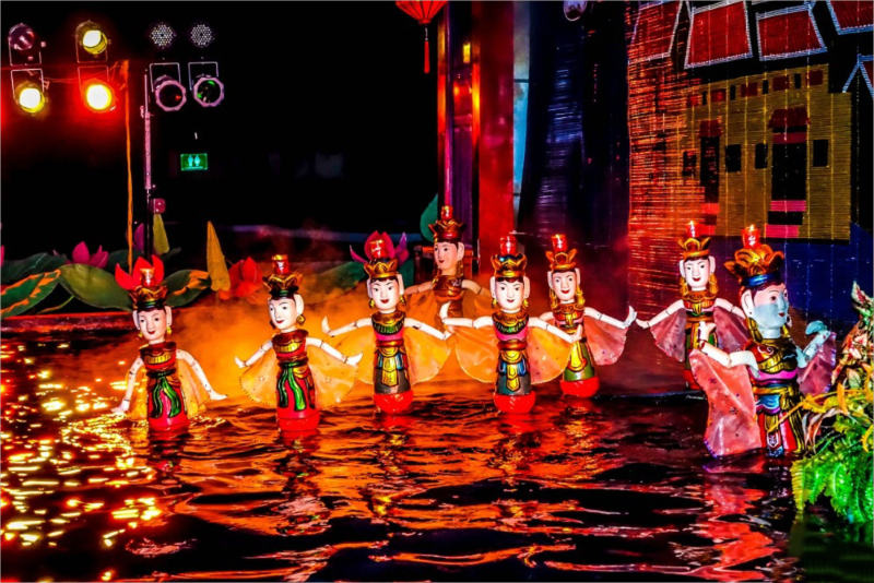 【水上木偶戲】相傳超過千年的傳統表演,利用拉繩技巧令木偶於水池上表演
